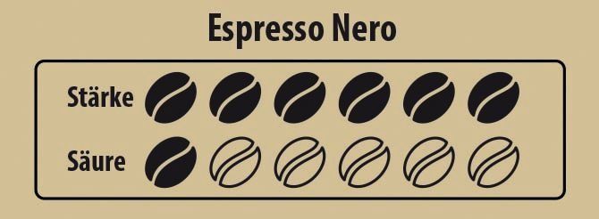Die Espresso Nero Mischung (ca. 20% Arabica, ca. 80% Robusta) brilliert mit einem vollen kräftigen Körper, der durch den brasilianischen Arabica einen feinen runden Charakter erhält. Der für Robusta typisch hohe Koffeingehalt macht ihn zum idealen Frühstückskaffee, der unter anderem auch hervorragend für den Vollautomat geeignet ist.
